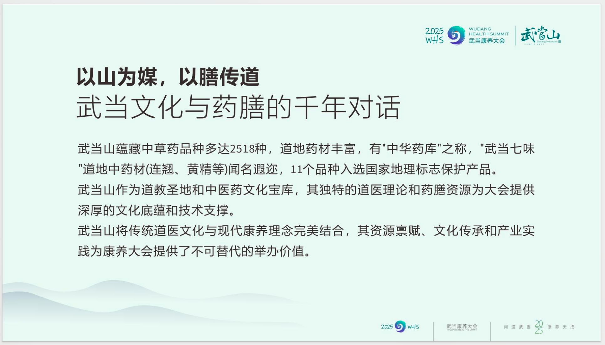 为更好地契合“健康中国2030”战略导向,并全面升级大会品牌形象与产业格局,我们郑重宣布:“2025年首届武当康养大会暨第五届武当道家医学康养大会”全面启用全新主视觉体系。